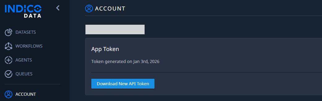 Most browsers will download the API token as indico_api_token.txt and place it in your Downloads directory. We suggest moving the token file from Downloads to either your home directory or another location in your development environment.